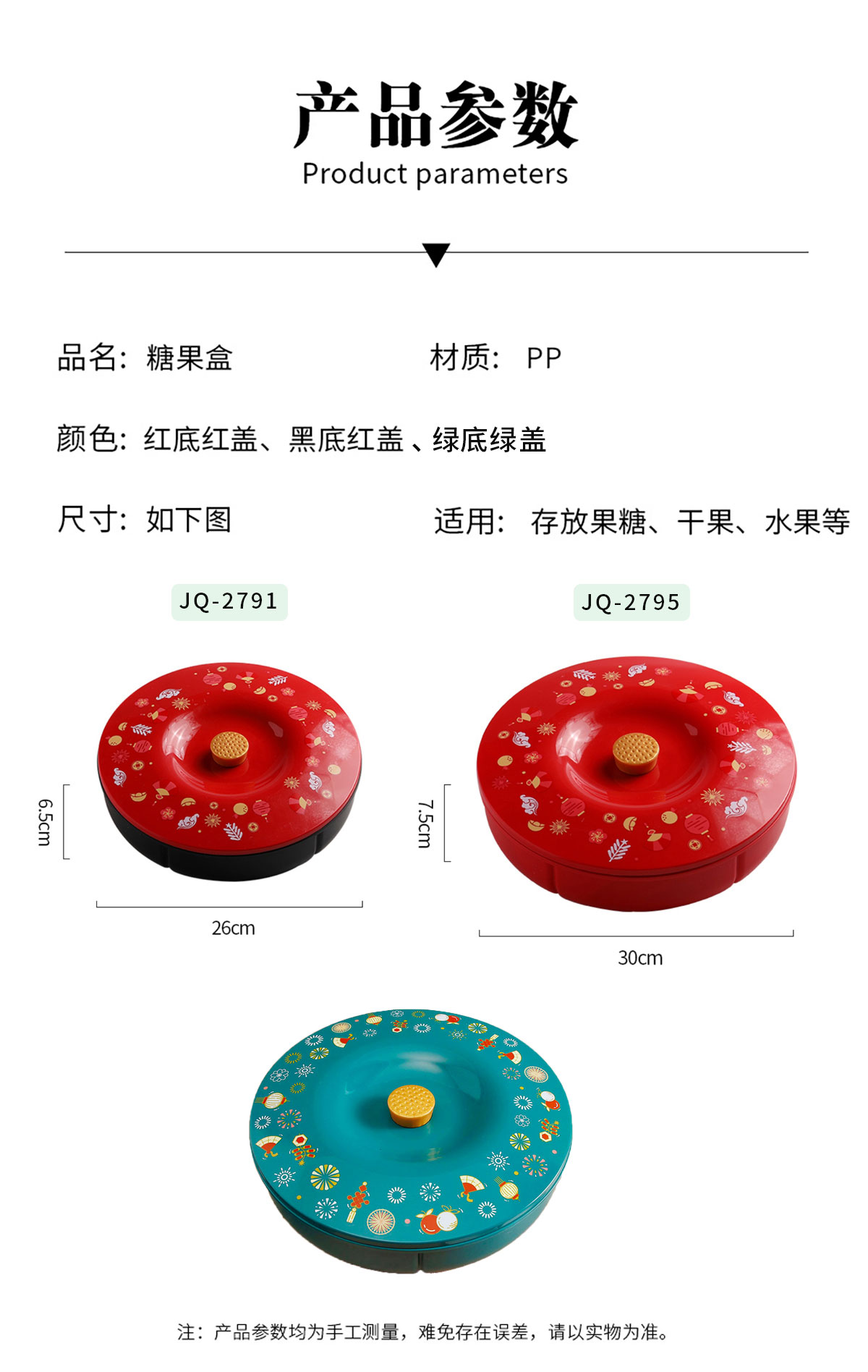 Size: JQ-2791:Φ260*高度80mm JQ-2795:Φ300*80mm
