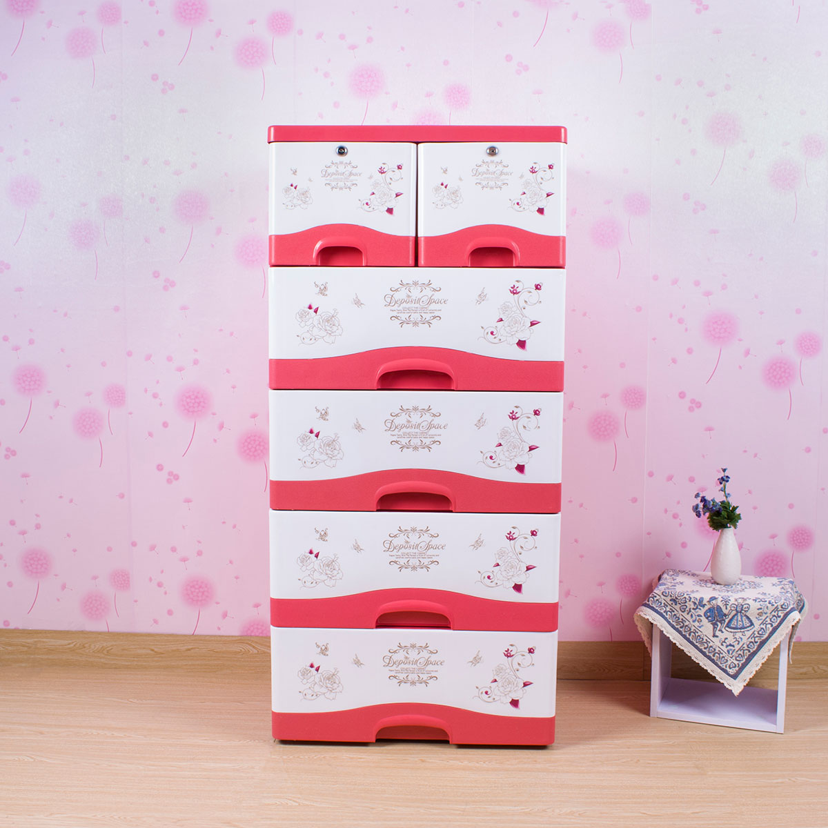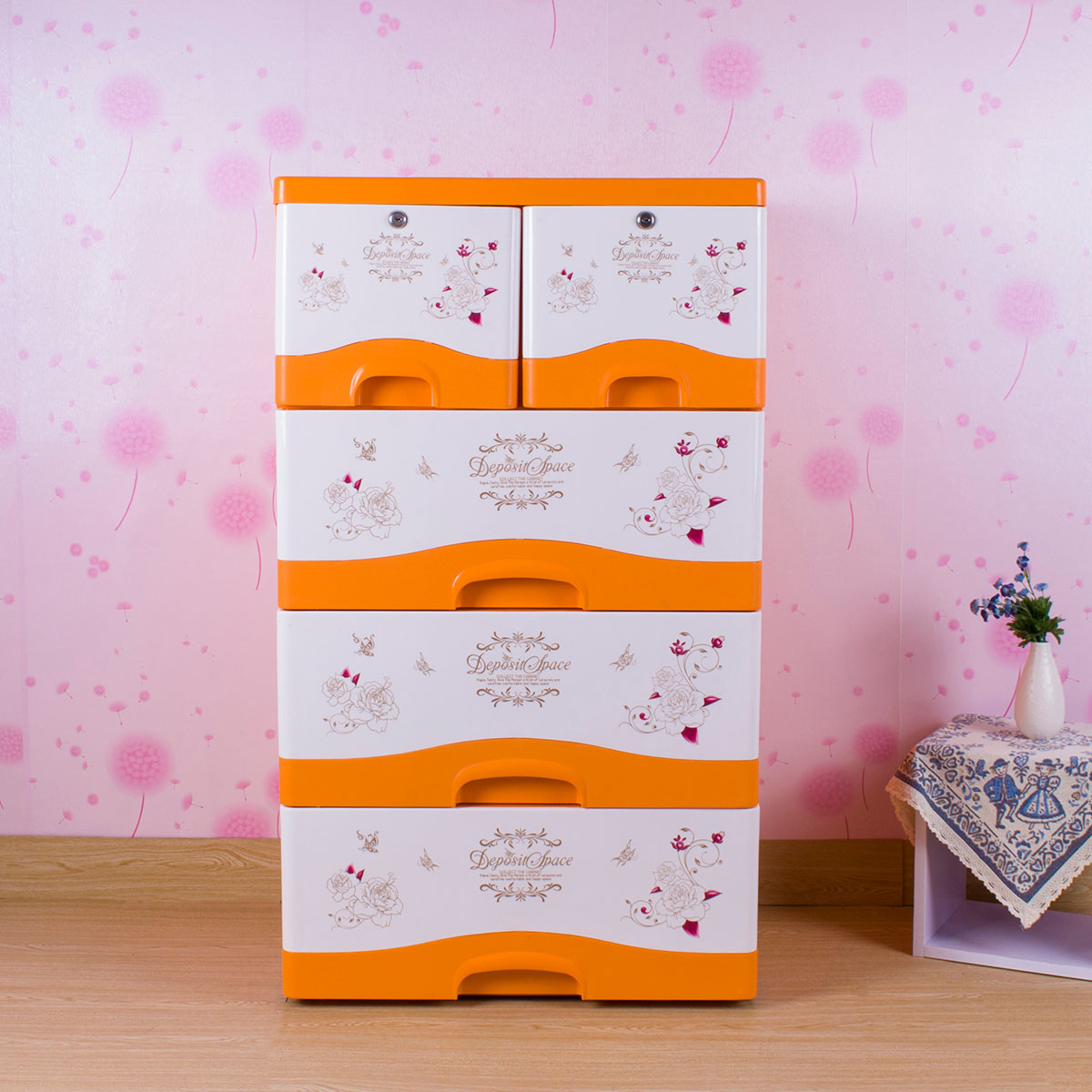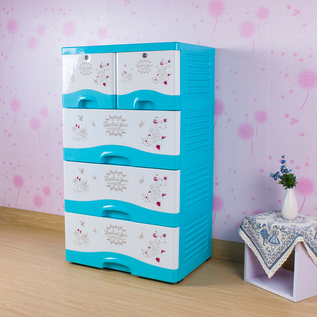 雙層格面印花帶鎖整理柜(四層/五層)
