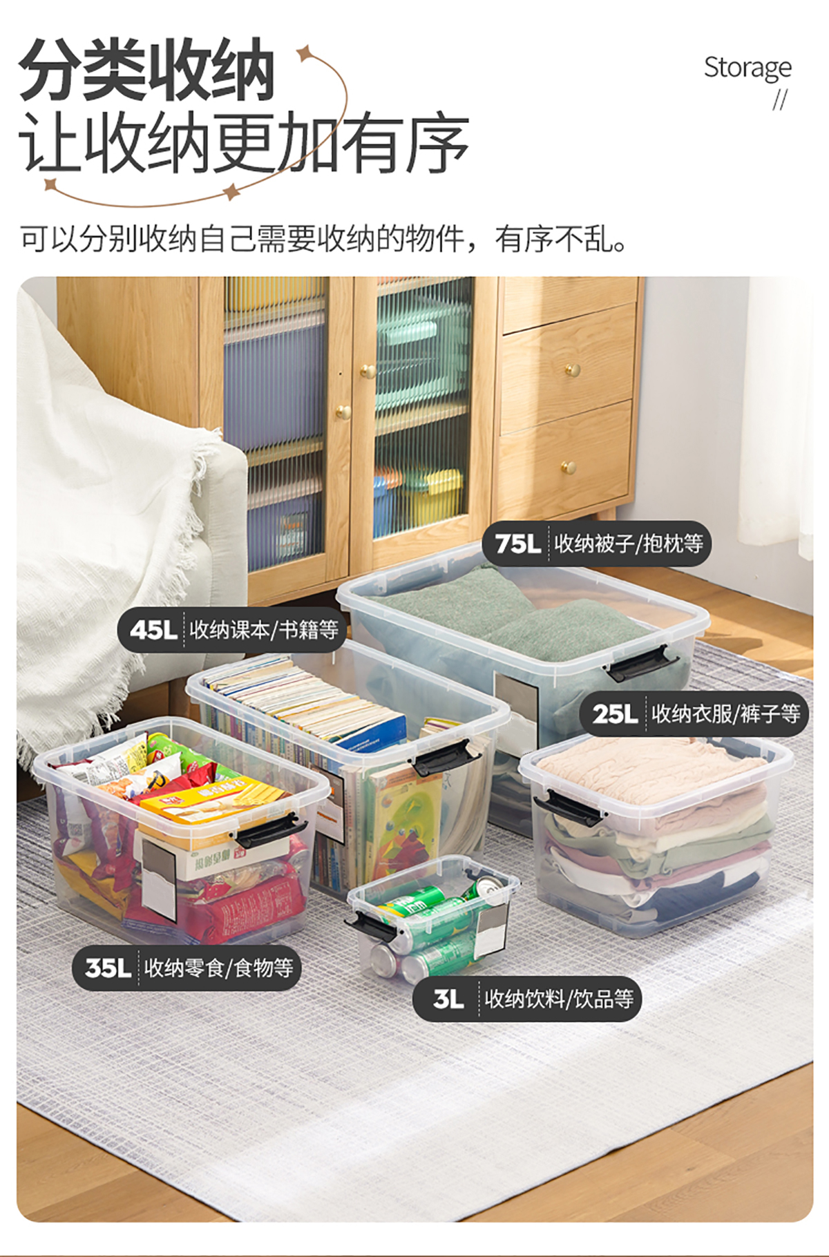 高透明儲(chǔ)物箱3L/8L/12L/25L/35L/45L/55L75L/100L