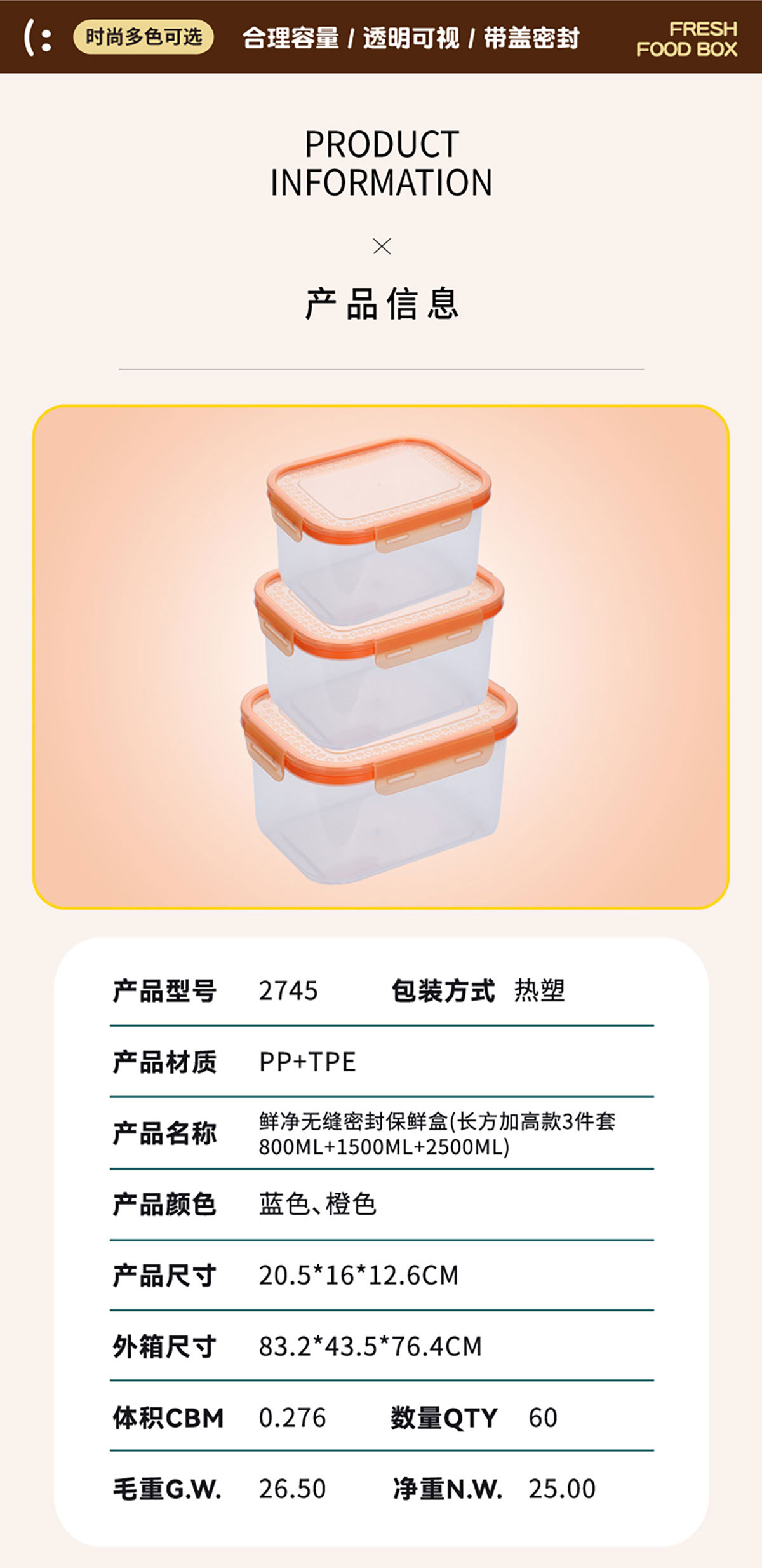 Size: AQX-2745:205*160*126mm/長方加高款3件800ml+1500ml+2500ml