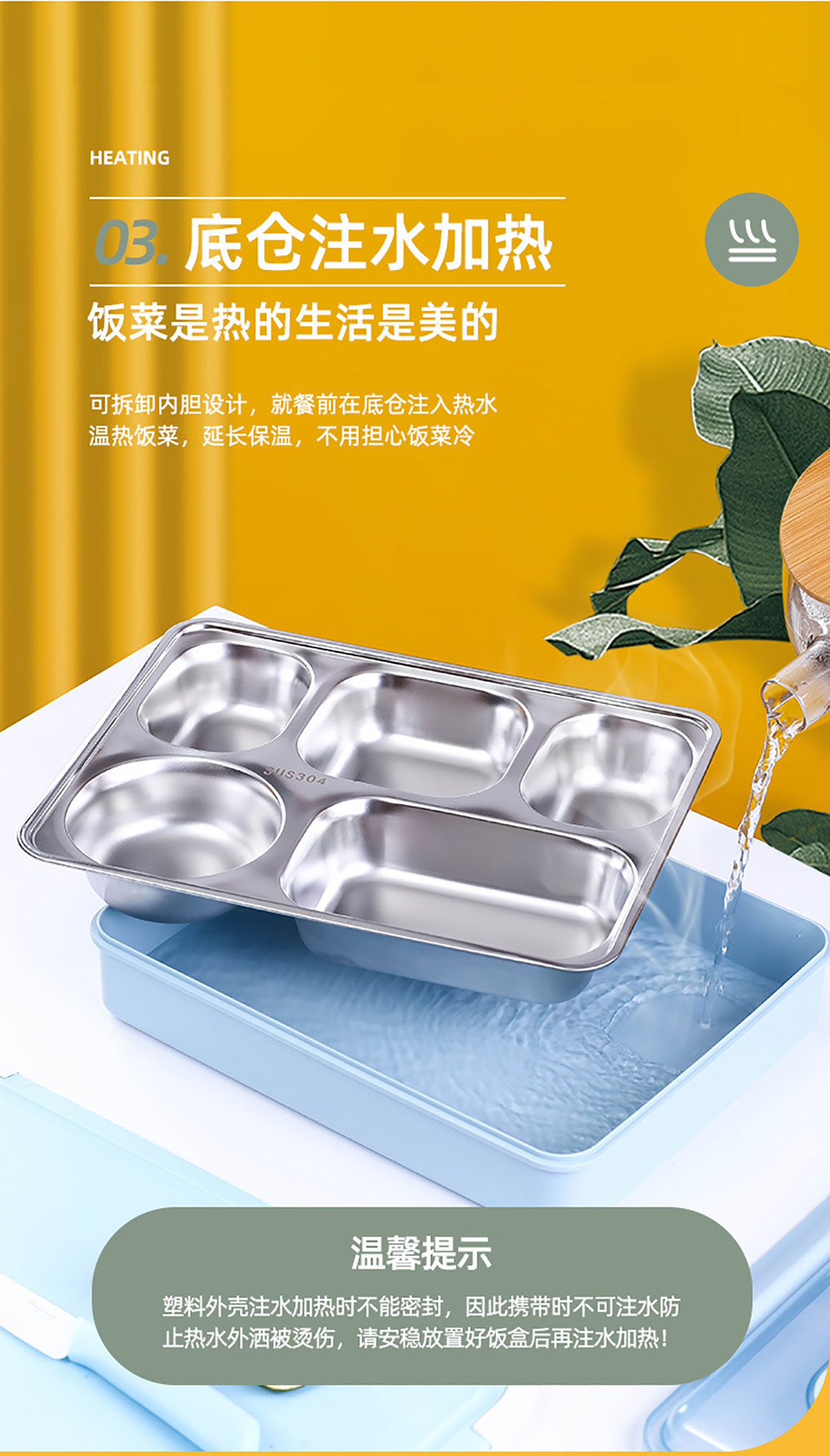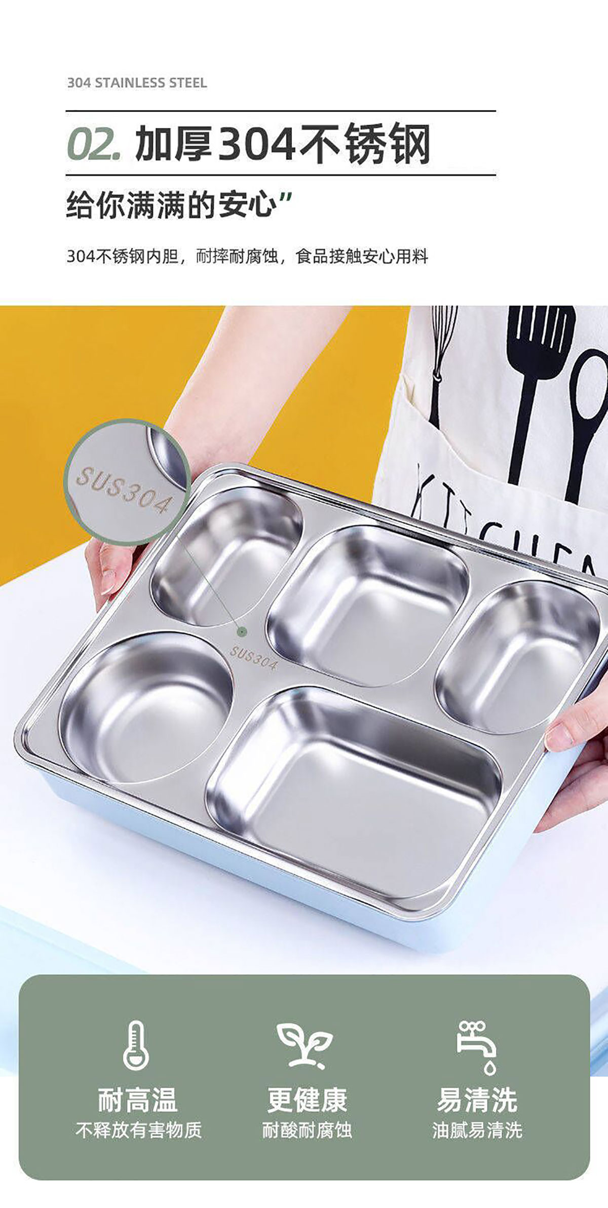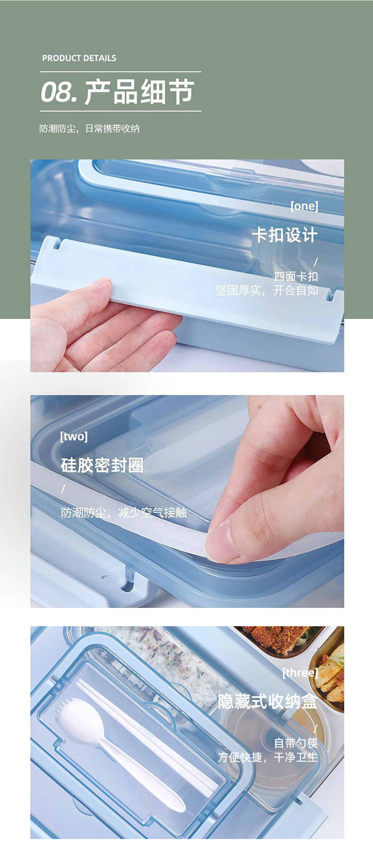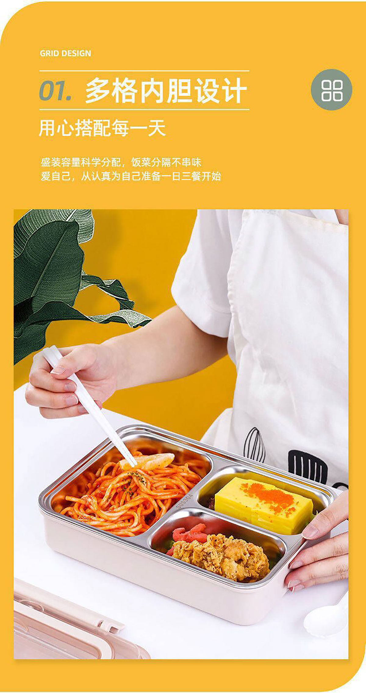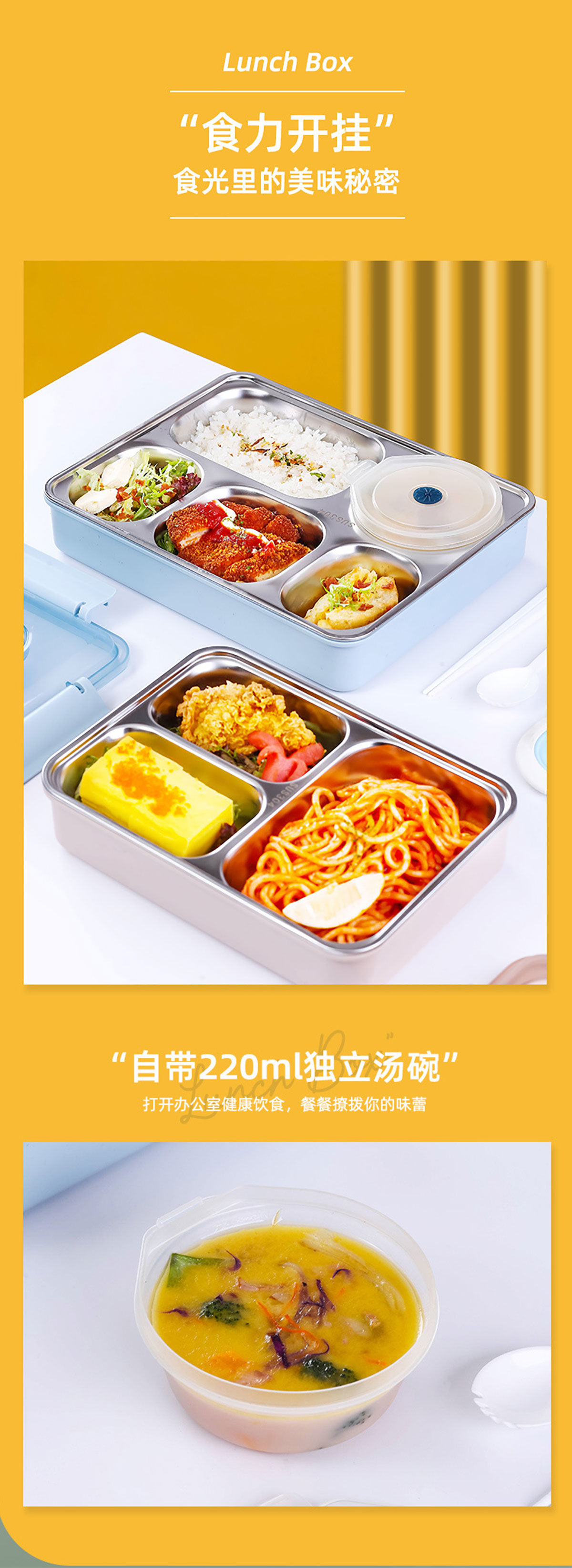 便捷式不銹鋼飯盒 小號(hào)(三格/四格)大號(hào)(四格/五格)