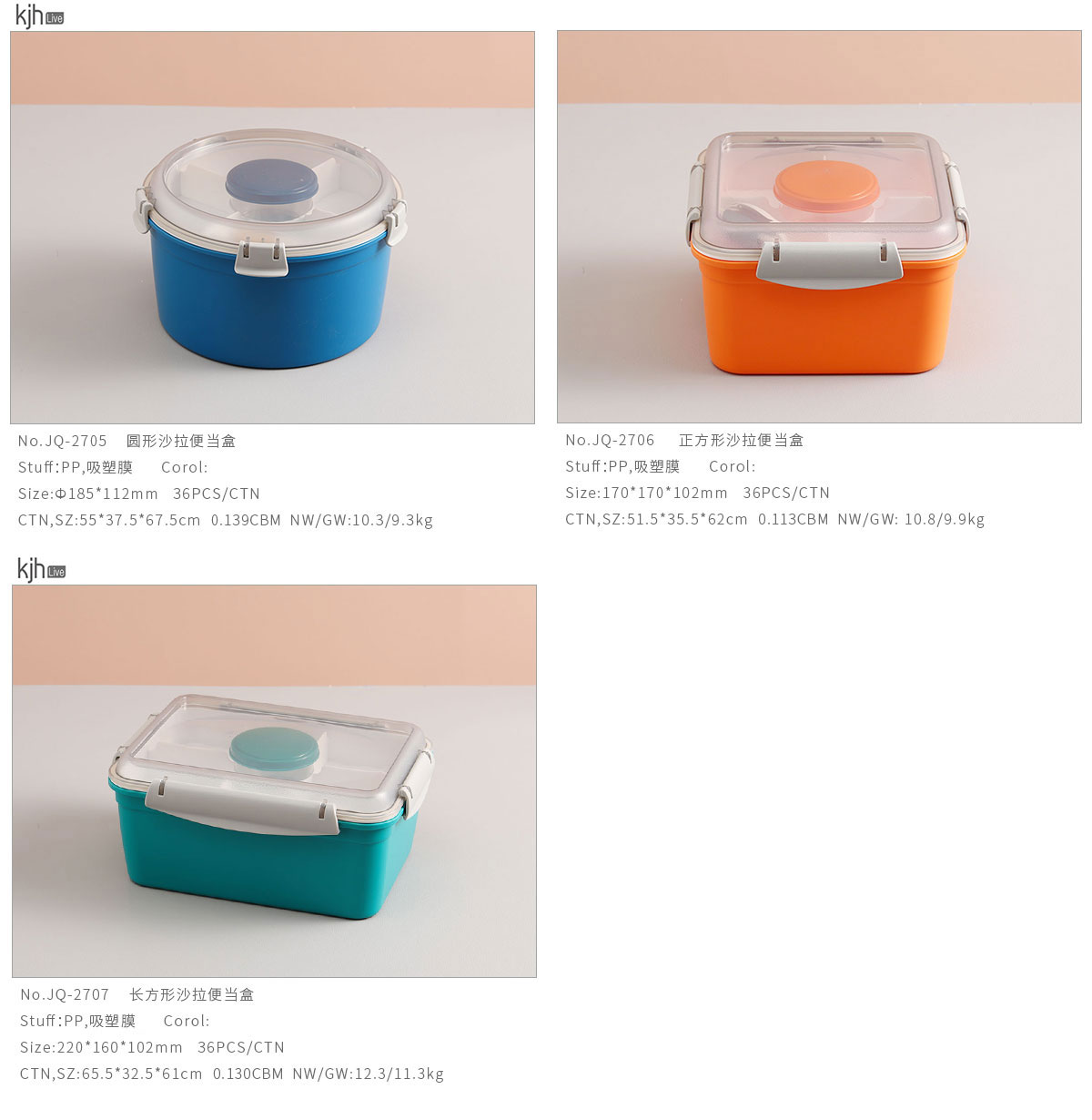 Size: JQ-2705:Ф185*112mm JQ-2706:170*170*102mm JQ-2707:220*160*102mm