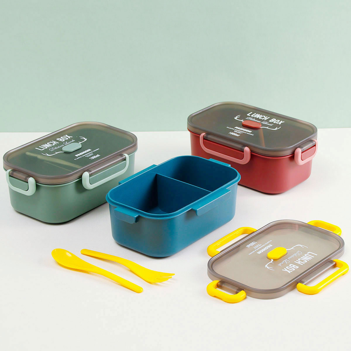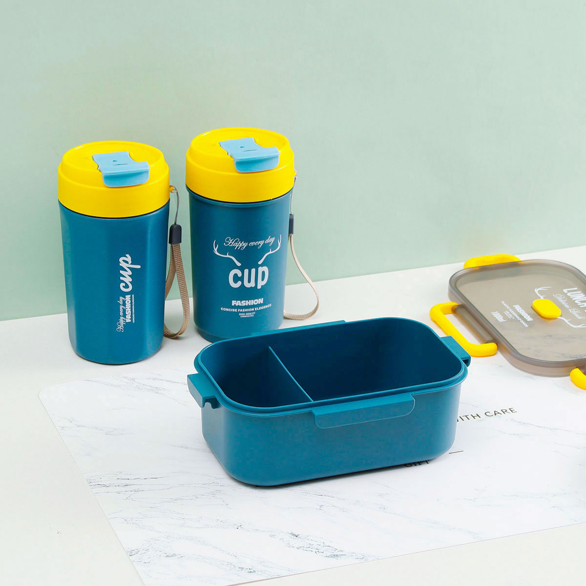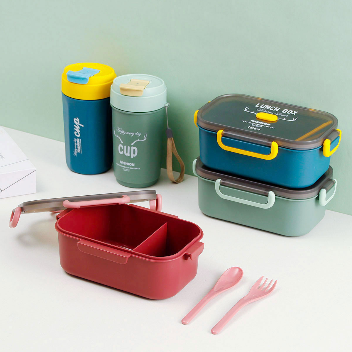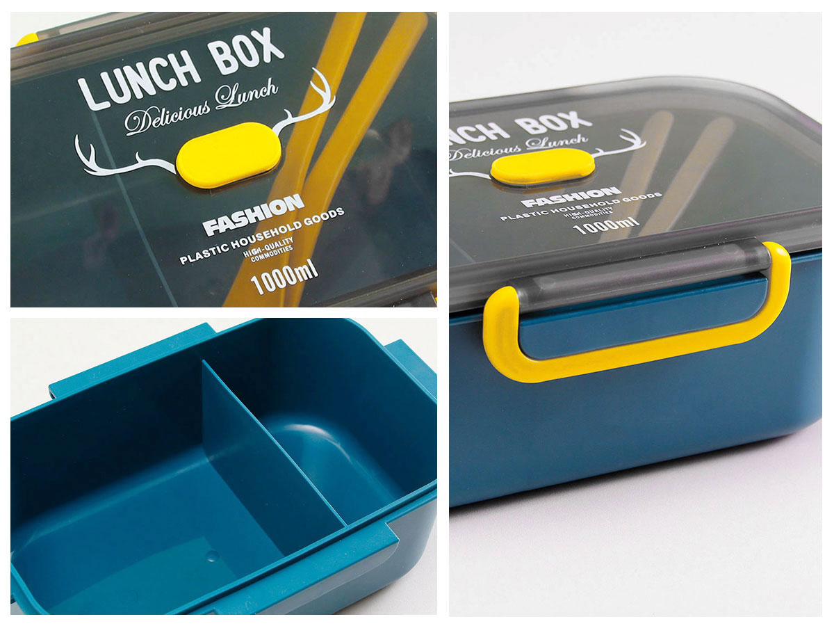 長(zhǎng)方單層分格密封飯盒(1000ml)+圓形/八角隨行杯(500ml)
