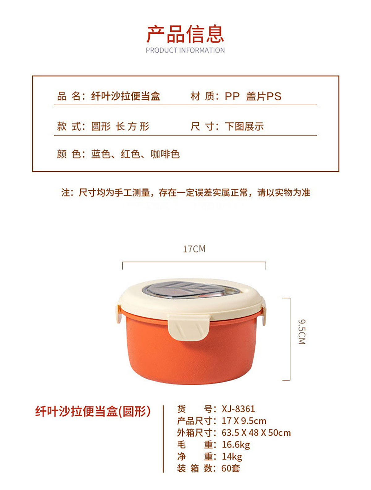 HH-XJ8361(圓形):170*95mm/容量:底600ml+格320ml