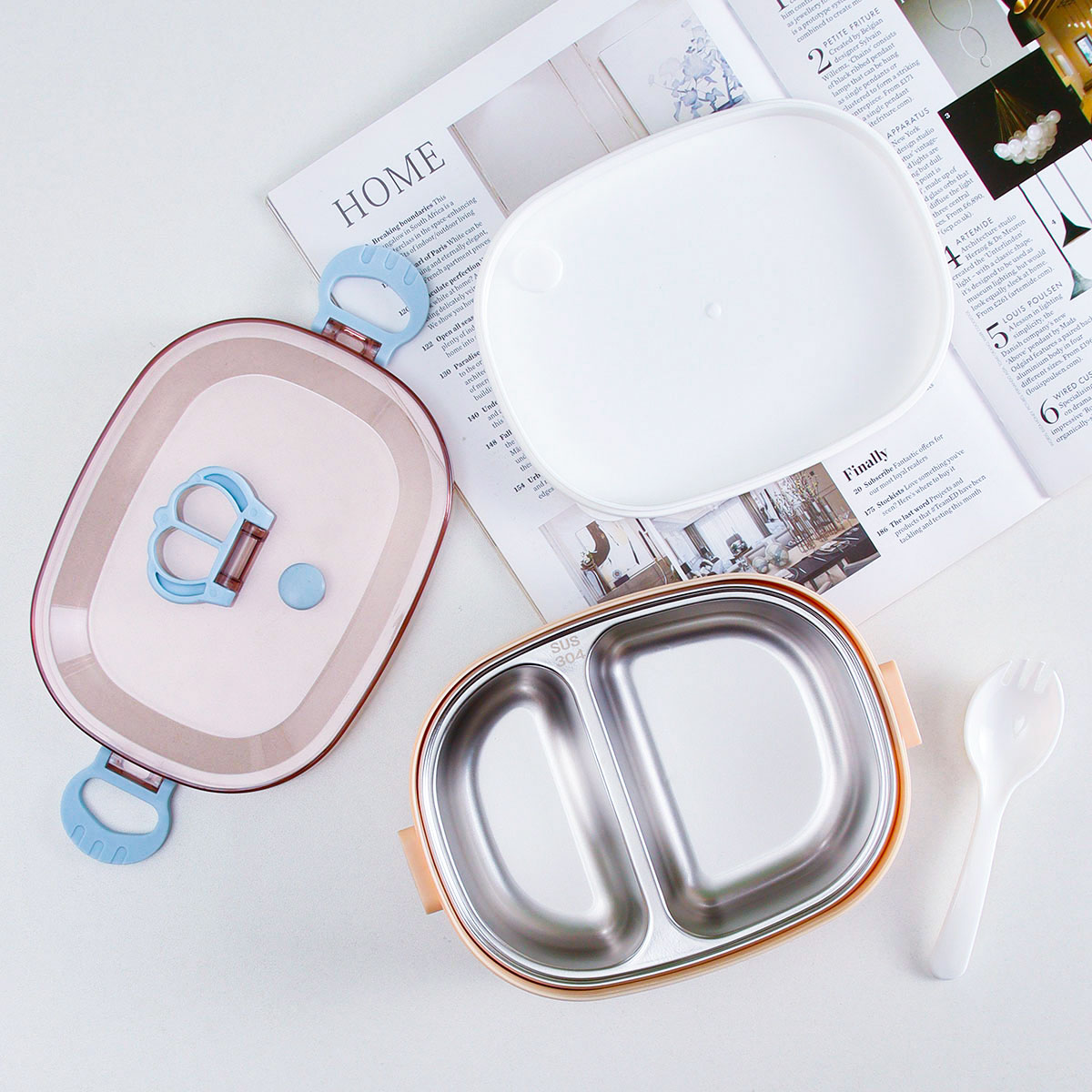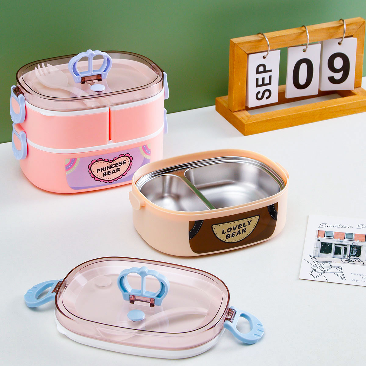 童趣橢圓形單層/雙層便當(dāng)盒