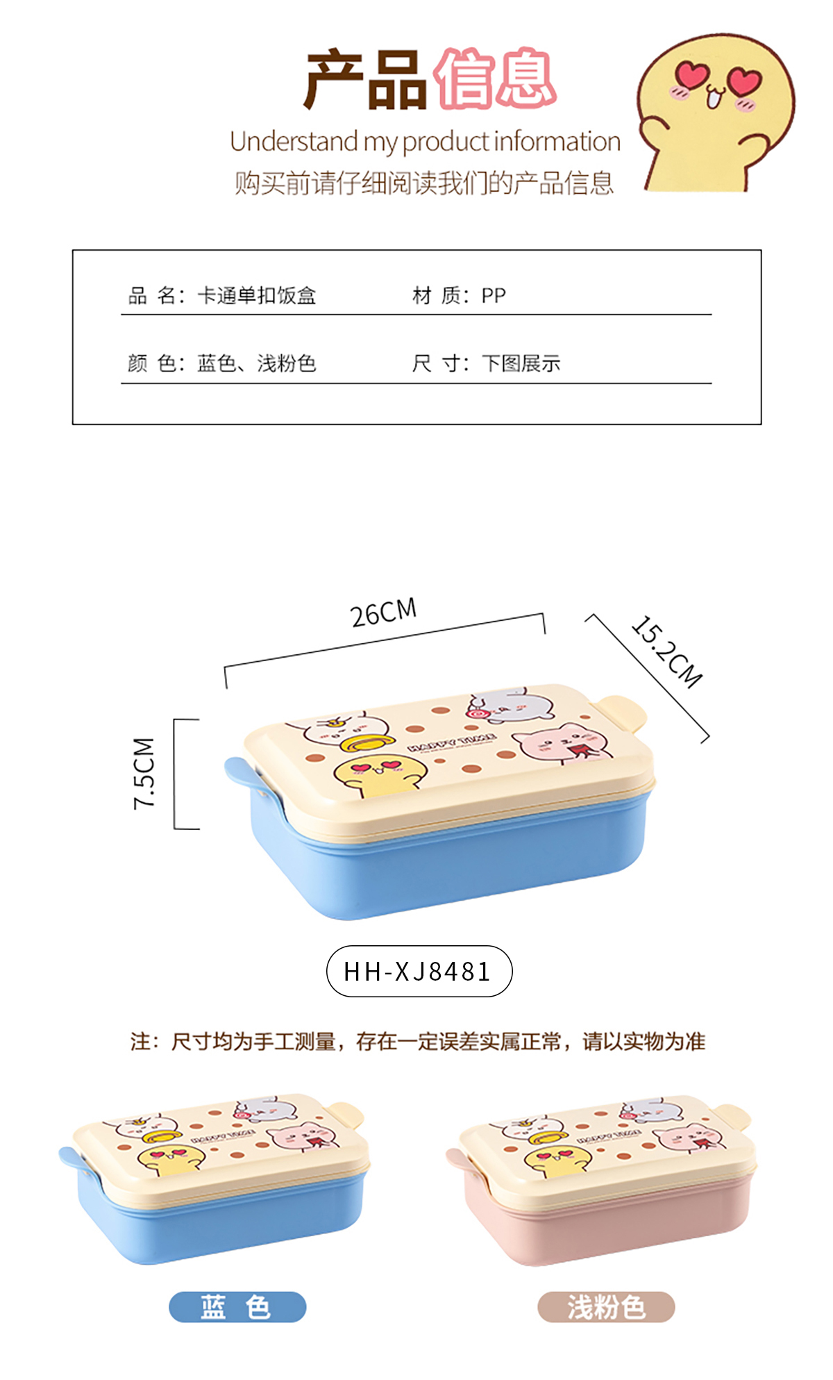 Size: HH-XJ8481(長方形):260*152*75mm(77mm) HH-XJ8482(正方形):225*177*76mm
