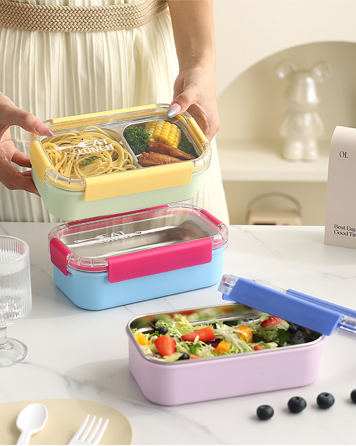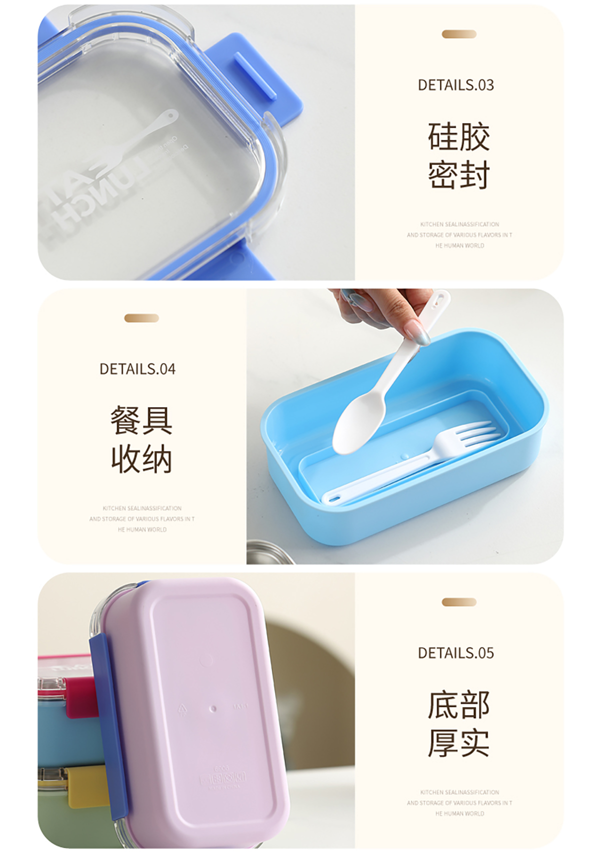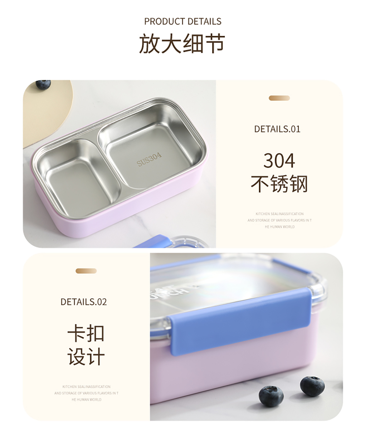 Size: 一格:203*118*65mm/600ml 二格:203*118*65mm/500ml