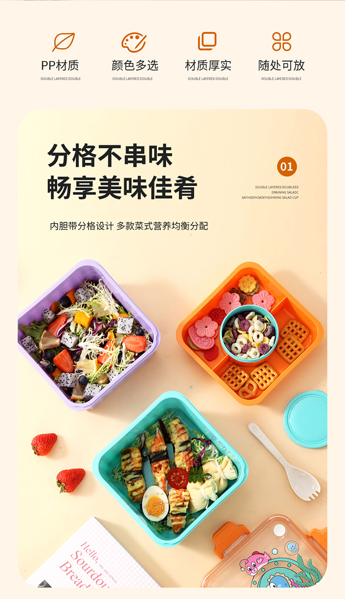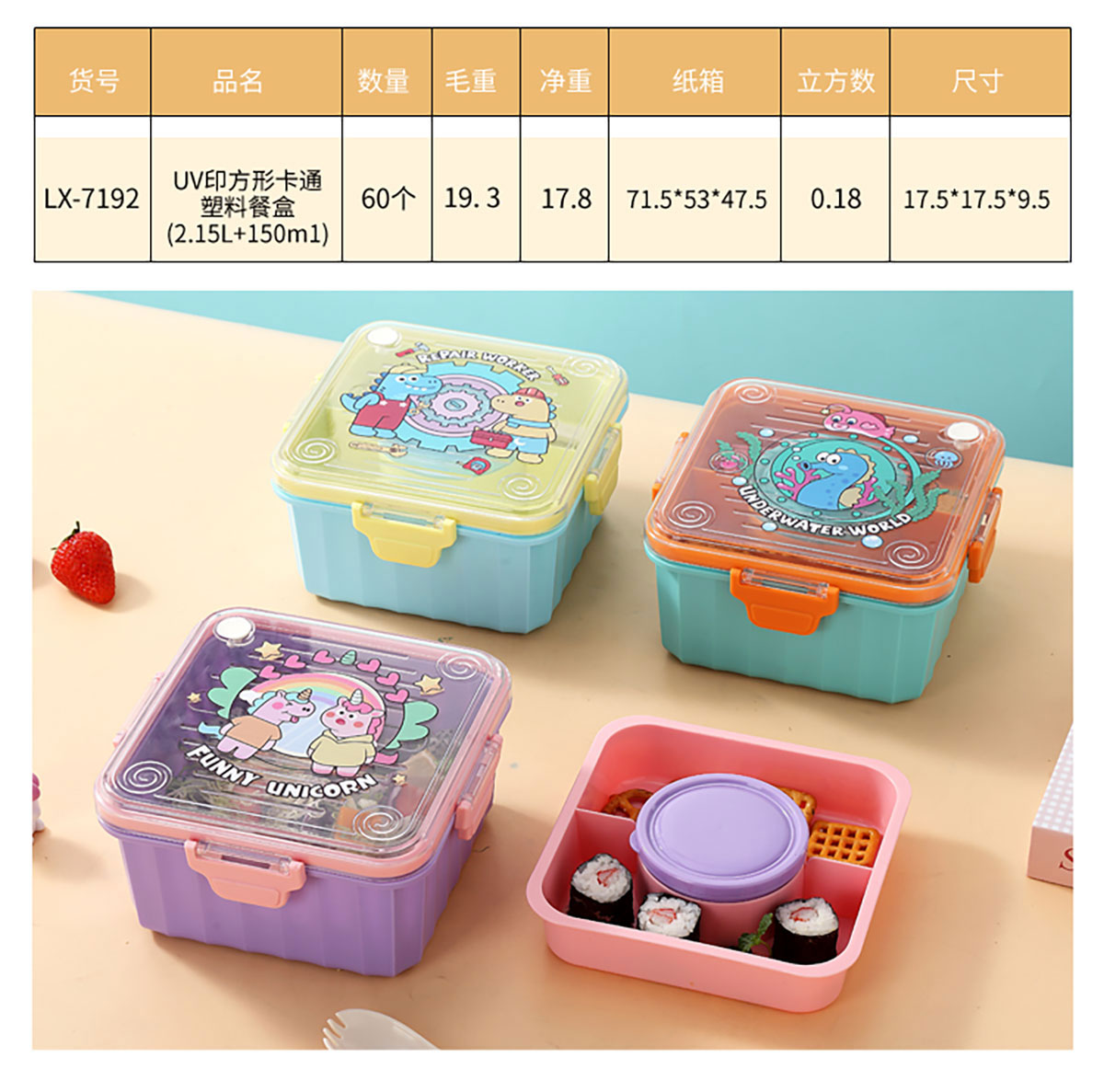 LX-7192(方形):175*175*95mm/2.015L+PP湯碗150ml