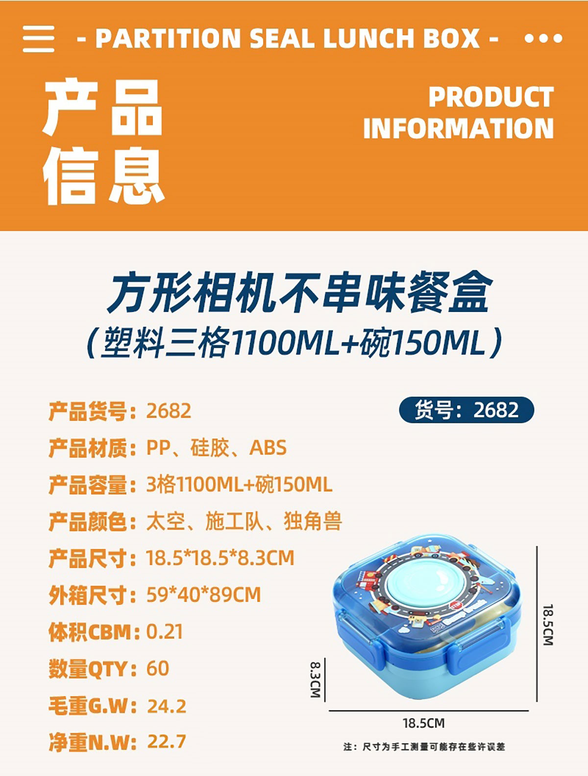 Size: 185*185*83mm/1100ml+碗150ml