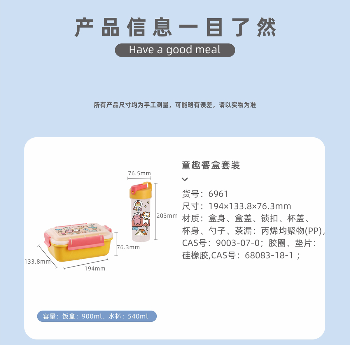 Size: 水杯:76.5*203mm 飯盒:194*133.8*76.3mm