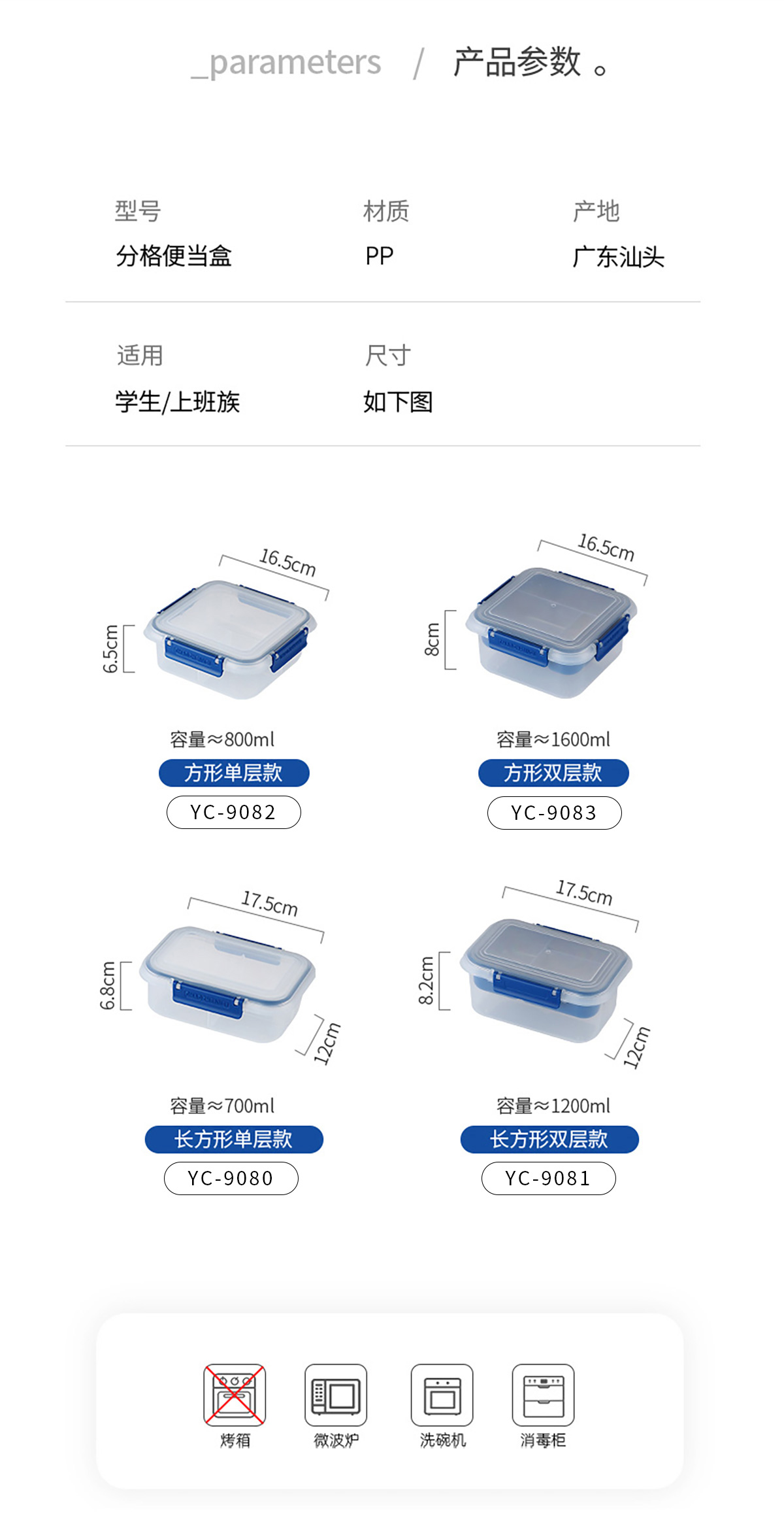 Size: YC-9080(長方形單層):175*120*82mm/700ml