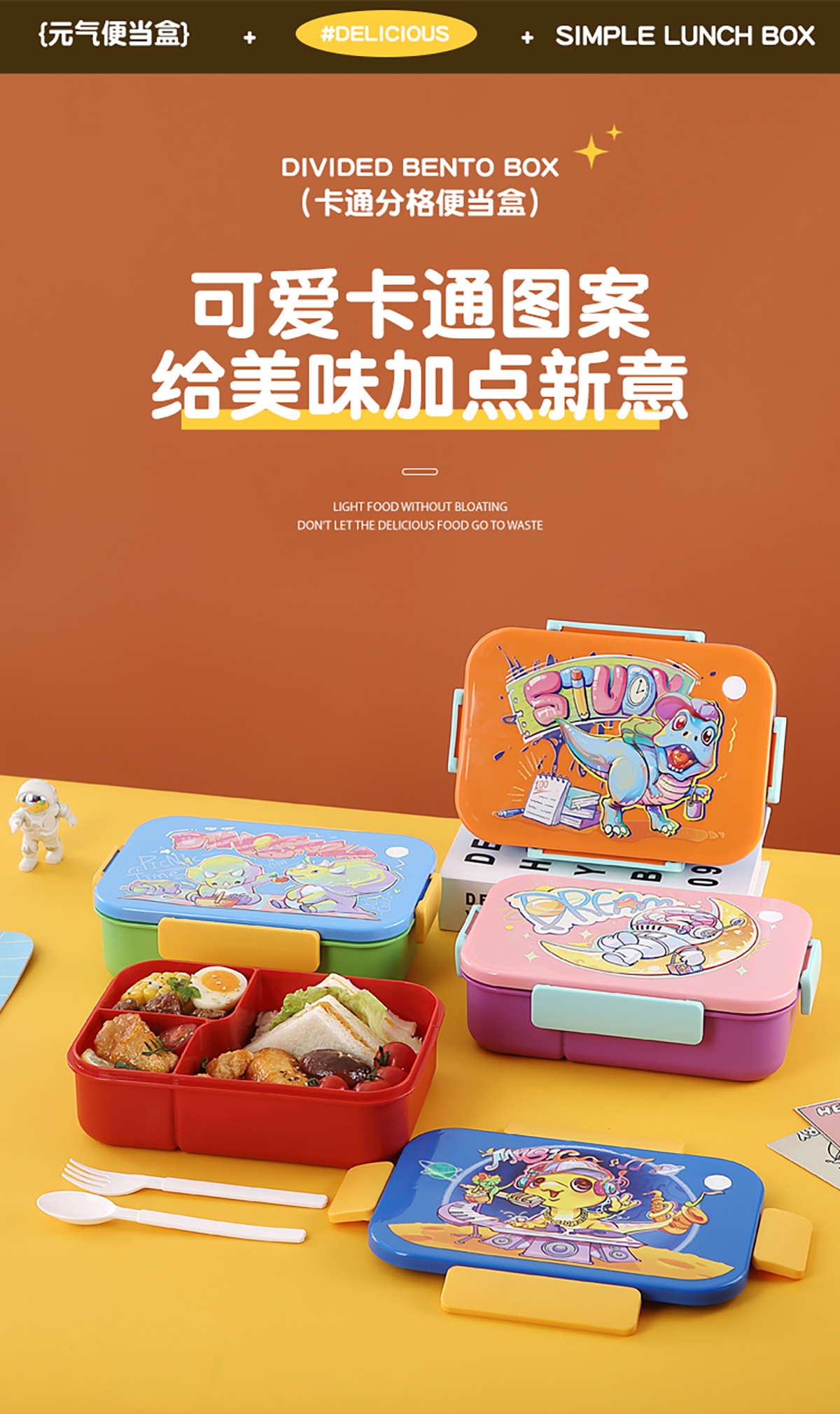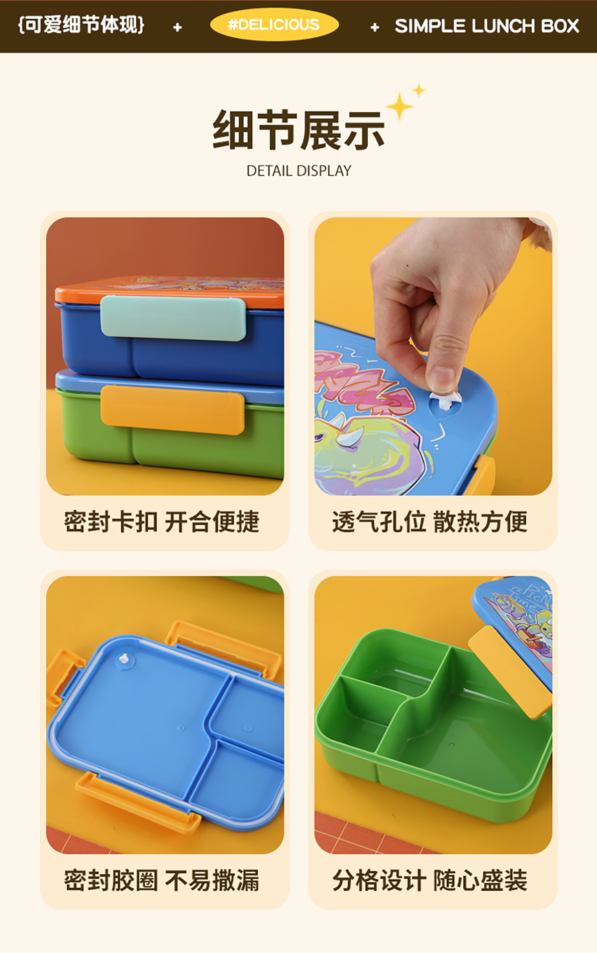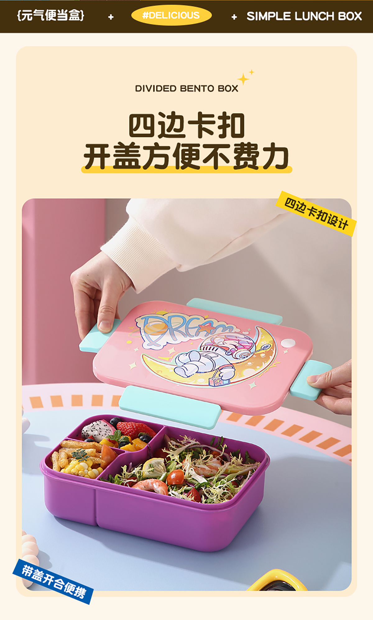 卡通實(shí)色蓋分格飯盒1450ml