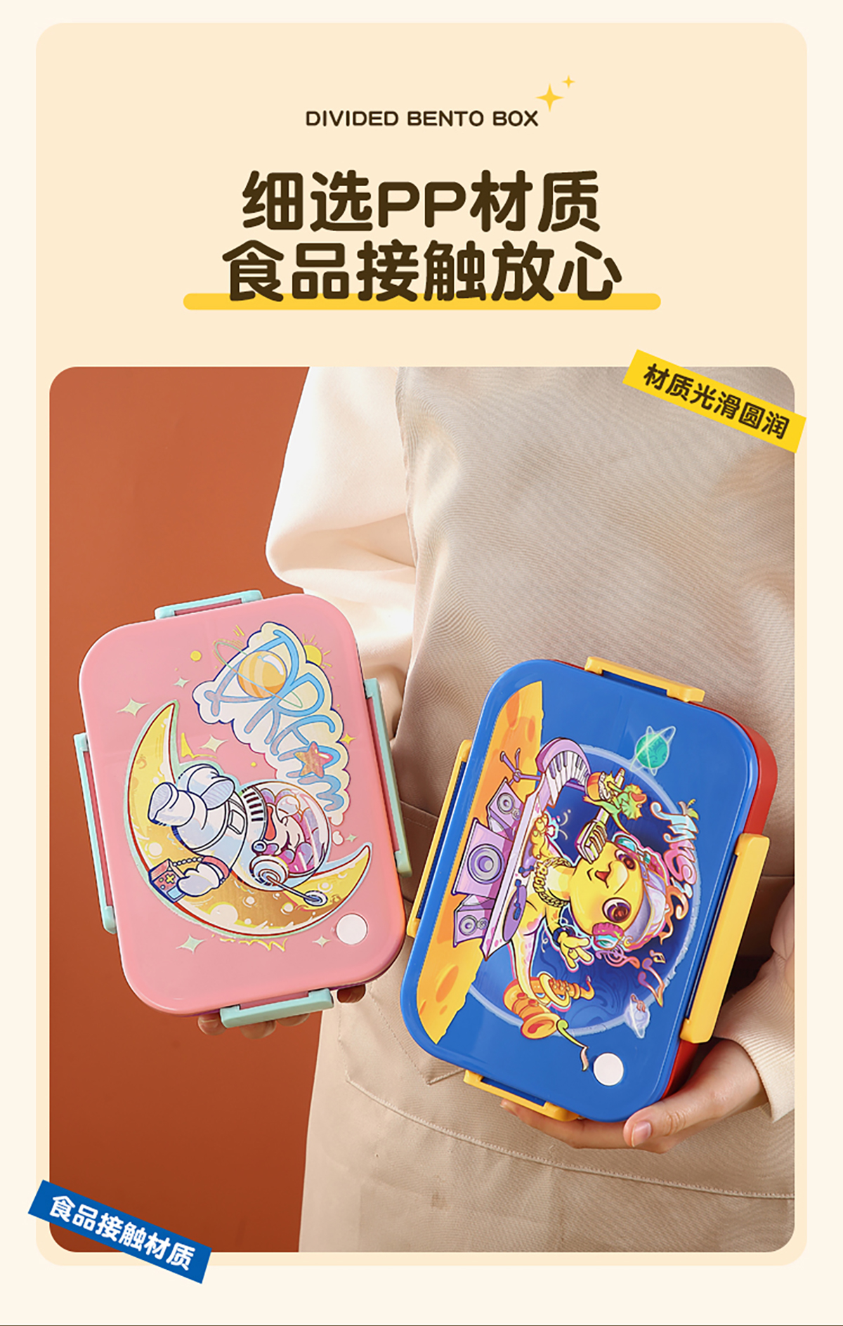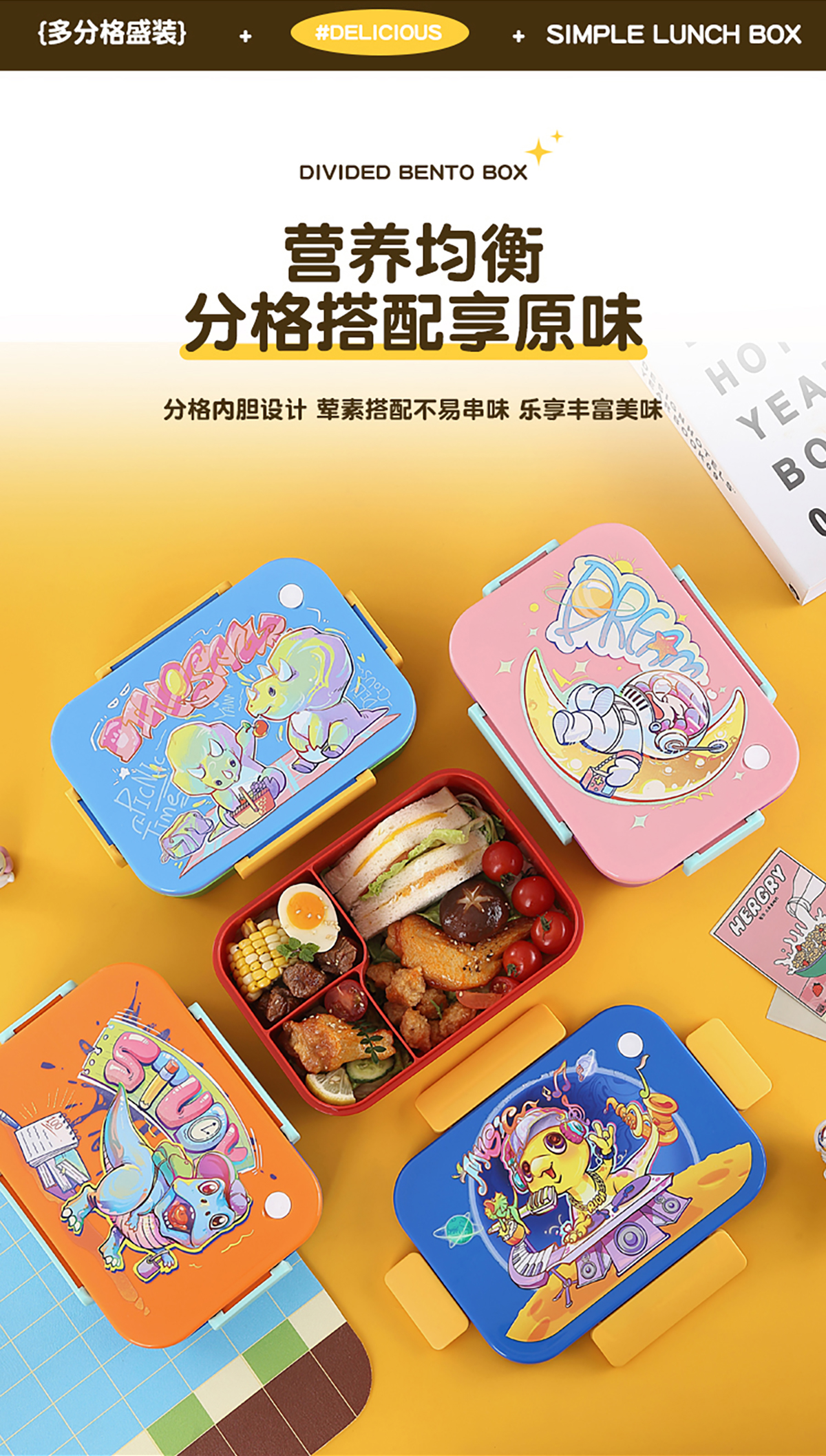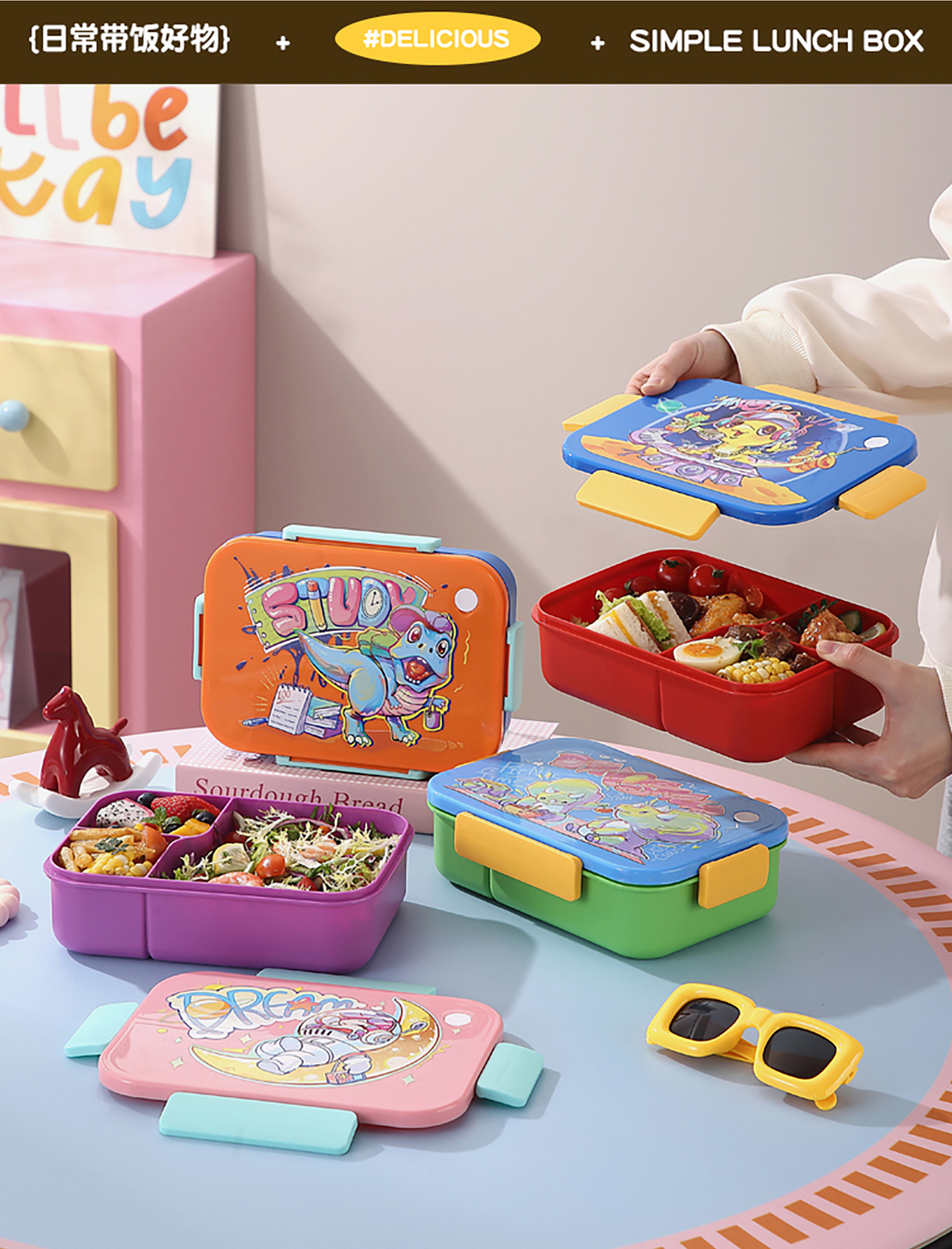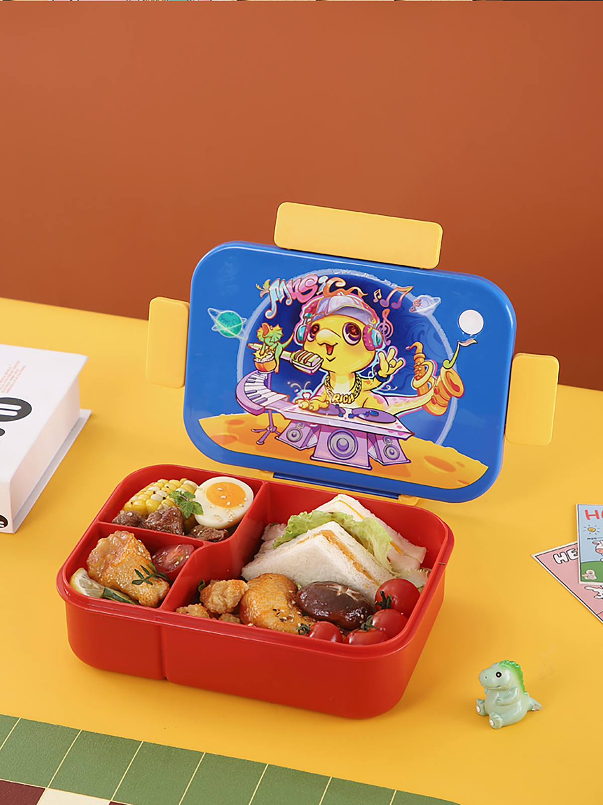 卡通實(shí)色蓋分格飯盒1450ml